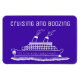 Magneta de cruzeiro engraçada e divertida com design de arte branca de um navio de cruzeiro e ondas. O texto "Cruzamento e Boozing" pode ser alterado para a sua própria mensagem, assim como para o fundo vermelho. Perfeito para cruzeiros pela primeira vez para viajantes de cruzeiro experientes. Estes ímãs de navios de cruzeiro são úteis num cruzeiro. Coloque o ímã na porta do seu posto de metal para usar como um marcador de porta para ajudá-lo a identificar e encontrar sua cabine.