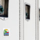 Comores afligiram o emblema com a bandeira e o casaco de armas.