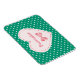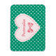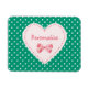 Um padrão de bolinhas verde esmeralda bonito com um adesivo em forma de coração colado a rosa e embelezado com um arco cor-de-rosa bonito. Personalize adicionando seu nome a esta cor de tendência do ano. Perfeito para a na moda.