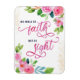 Encorajar alguém a manter a fé nesta design de tipografia única que apresenta esta mensagem em letras cor-de-água cor-de-rosa: "Caminhamos pela fé e não pela visão." O design é acentuado com flores de aquarela e borrifadas de ouro confetti.