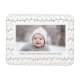 Envie cartões de natal personalizáveis e personalizados para amigos, colegas e familiares em um simples, minimalista, elegante, divertido, festivo e moderno ímã fotográfico! Um belo quadro de variedade de ouro e luzes Enfeites de natal pretas rodeia sua foto. A saudação "Feliz Natal" está escrita em caligrafia elegante, e abaixo apresenta sua mensagem de saudação personalizada do nome da sua família na tipografia moderna. Inverter para revelar um belo fundo padrão das luzes do enfeites de natal.