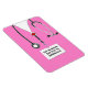 Design da escola de enfermagem criativa com esfregões de hospital cor-de-rosa. Edite texto para adicionar o nome da enfermeira para criar parabéns de graduação, desejo de aniversário ou cartão de apreciação de enfermeira.