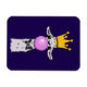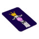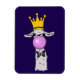 Um ímã flexível com uma lama branca a soprar uma grande bolha rosa. Vestindo uma coroa dourada e uma gravata arco preta. Fundo roxo escuro.