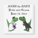 Maravilhosa e engraçada noiva de dinossauro verde e caricatura de noiva. Também é possível adicionar texto personalizado e alterar a cor do plano de fundo ao fazer o pedido.