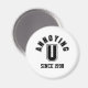 Você tem um doutorado em ser uma dor no fundo? Se assim for, este Encantador Engraçado de U (You) Magnet em preto é perfeito para usar em volta de irmãos ou qualquer outra pessoa que você ama irritar! Com uma sensação de memória universitária, este design tipográfico humorístico faria um presente de excelente para si mesmo ou para qualquer número de pessoas irritantes que você possa conhecer. Fácil de personalizar, adicione o ano em que você foi nascer ou outro texto personalizado de sua escolha. Clique no botão "Personalizar a TI" para encontrar opções adicionais de personalização.