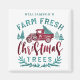 O design apresenta nossa design tipográfica "Fazenda Árvores de Natal frescas" com um estilo vermelho e verde, desenhado à mão, e pickup caminhão de vintage, carregando de Natal no fundo. O verde de Natal e a folhagem criam um design festivo moderno e rústico. Personalizado com seu sobrenome e monograma. A ilustração é estilizada na textura rústica vermelha e verde que cria um aspecto quente, acolhedor e festivo. Arte original desenhada à mão pela Moodthology.