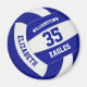 Esta equipe colorido o ímã temático de vôlei apresenta a imagem realista de um vôlei com painéis azuis e brancos sobre os quais você pode personalizar o nome do jogador & jersey number mais nome da escola ou do clube e o nome da mascote em uma letra estilo varsity - por katz_d_zynes