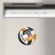 Este ímã temático de vôlei com nome de equipe personalizado apresenta a imagem realista de um vôlei com painéis em preto, laranja e branco sobre o qual você pode personalizar o nome do jogador & número de camisa mais nome da escola ou do clube e nome de mascote em uma letra estilo varsity - por katz_d_zynes