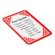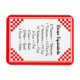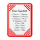 Esta imã de geladeira facilita a busca de receitas que medem equivalentes com esta lista de equivalentes comuns de medição para ajudar a cozinhar e cozinhar na cozinha com um fundo retro vermelho e branco verificado.
