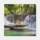 Erawan Waterfall com Deer Relaxing no nível superior da queda - Província de Kanchanaburi Tailândia.
