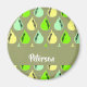 Adicione o seu nome a estas peras coloridas no design de padrão de fundo verde.