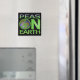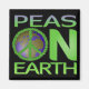 O texto diz "Ervilhas na Terra" com ervilhas em forma de símbolo de paz no topo da Terra, usadas como "o".