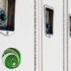 Escada circular verde capturada numa escola em Zurique, Suiça.