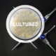 Fotografia de uma placa de cultura de bactérias com colônias de bactérias. Texto personalizável, "Cultivado" impresso no centro.