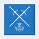 Duas espadas de barro cruzadas e um símbolo de carapaça nas cores da bandeira escocesa