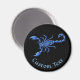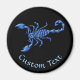 Desenho de escorpião azul com sombreamento 3D. Cor de fundo personalizada. Texto personalizado.