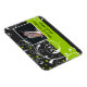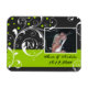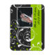 Casamento de folha de rolagem preto, verde e florescente Salve o ímã flexível Data mostrando folhas brancas de rolagem e pontos verdes em fundo preto.