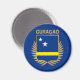 A bandeira nacional de Curacao é infundida numa forma de escudo mimado de ouro falso, que assenta em folhas de ouro falso.