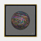 Design de arte digital moderna de uma bola de vidro multicolor, com fundo neutro e estrutura.