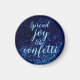 Neste ímã deslumbrante estão misturando sombras de confete azul em um pano de fundo azul real escuro onde no centro você pode personalizá-lo com uma letra, nome ou logotipo ou manter como está a frase "espalhar alegria como confete" criando vibrações alegres. Tema de confete azul-sonhador.