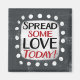 "Espalhar um pouco de amor hoje" é um design de texto giro que apresenta uma forma de sotaque branca rodeada de bolinhas brancas giras.