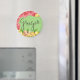 Um clássico Magneto Refrigerador redondo que mostra a ilustração da especiaria gengibre com raízes, flores, folhas e inscrição. Ideal para a decoração da cozinha ou recipientes magnéticos.