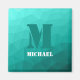 Monograma Personalize com seu nome e inicial personalizados. O padrão geométrico do gradiente de turquesa teal triângulo ombre. Malha geométrica triangular com design de gradiente máximo legal.