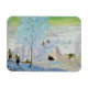 Imagem vinda na Rússia de esqui de pessoas nas encostas de uma vila. A cena de inverno de arte é rica em cores por Boris Kustodiev.