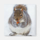 Foto retrato adorável de um esquilo de cinza capturado borbulhando uma noz na neve.