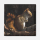 Este ímã apresenta um momento fora do tempo. Um belo esquilo vermelho está sentado num galho num manto de luz solar em frente ao latido texturizado escuro de uma cerejeira selvagem.