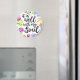 Design de tipografia estilo moderna, escrita à mão, com palavras, "É bem com a minha alma" do famoso hino. O tipo é rodeado por uma borda colorida de flor de cor d'água em todos os lados.