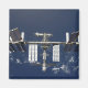 A Estação Espacial Internacional, recuada por uma Terra azul e branca.