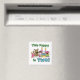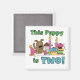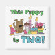 T-shirts, segundo aniversário de papoila, fatos-macaco, ímanes, cartões, sacos de tote, botões de segundo aniversário e mais com velas de aniversário, um adorável cachorrinho marrom, um chapéu de festa e muitas guloseimas de aniversário! O texto diz: "Este Cachorro é 2!".