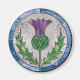 Um design que apresenta o emblema escocês como um painel de vidro manchado.