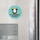 Estou cercado por idiotas! Insulto engraçado e sarcástico com pinguim preto e branco com pés cor de laranja e gráfico de bico com cor azul turquesa/verde de fundo ciano. Totalmente personalizável.
