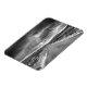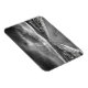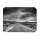 Esta foto mostra um preto e branco de uma estrada que leva a uma tempestade.