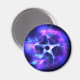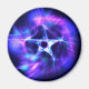 Este ímã está agarrado à minha imagem fractal roxa e azul de uma estrela de cinco pontas numa espiral de cor envolvente; tudo sobre um fundo escuro.