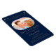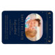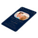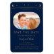 Mística Azul Dourada Sun Moon Star Space Save O Magnet das Datas apresenta um sol dourado, lua e estrelas armadas sobre um fundo azul escuro marinho. Dentro é a sua foto favorita e o seu personalizado salva as informações de data. Personalize editando o texto nas caixas de texto. Projetado por ©2022 Evco Studio www.zazzle.com/store/evcostudio