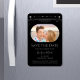 Mística Black Silver Sun Moon Star Space Save The Dates Magnet apresenta um sol prateado, lua e estrelas armadas sobre um fundo preto. Dentro é a sua foto favorita e o seu personalizado salva as informações de data. Personalize editando o texto nas caixas de texto. Projetado por ©2022 Evco Studio www.zazzle.com/store/evcostudio