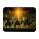Três Sábios atravessando o deserto através da estrela ouro de Belém para encontrar o bebê Jesus. frontiernow.com