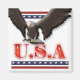 Ímanes americanos patrióticos, com a majestosa "águia careca" a abanar-se com as asas abertas e os talões arborizados, prontos para pegar as letras U.S.A. A design é colocada sobre um fundo branco que tem três faixas horizontais no topo e no fundo em vermelho, branco e azul, que têm estrelas sobre elas representando os 50 estados federados dos "Estados Unidos da América", o hino "estrelado" e a "bandeira americana", assim como todos os americanos patrióticos que estão orgulhosos de seu país. IDEAL PARA ~ Eleições Presidenciais, "Dia da Independência", como uma dádiva, lembrança ou memorabilização da sua viagem aos EUA; para qualquer Americano patriótico ou como uma dádiva única para um evento corporativo, uma função ou um encontro que honre aqueles que serviram bravamente e/ou morreram pelo seu país.