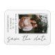 Capture a essência da elegância do eterno com nossa Imã salve a data maravilhosamente projetada, perfeita para casais modernos planejando seu casamento de sonho. Este modelo personalizável apresenta um design preto-e-branco chic, com um arco desenhado à mão que enquadra sua foto favorita, garantindo que seu anúncio especial se destaque. O script do na moda "Salvar a Data" ao longo do lado adiciona um toque de sofisticação, enquanto o layout simples e limpo mantém o foco em sua história de amor. Personalize com seus nomes, data do casamento, local e site para um convite perfeito e memorável. Ideal para noivas e noivos que apreciam elegância subestimada e design contemporânea.