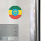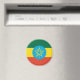 Bandeira da Etiópia. A atual bandeira da Etiópia foi adotada em 28 de agosto de 2009. As três cores tradicionais do verde, amarelo e vermelho remontam ao imperador Menelik (r. 1889-1913) e foram usadas pela primeira vez em uma bandeira em 1897. A atual bandeira e o emblema foram adotados após a derrota do regime marxista de Mengistu (no poder entre 1974 e 1991). O emblema pretende representar tanto a diversidade como a unidade do país. O azul representa a paz, a estrela representa diversidade e unidade, e os raios do sol simbolizam a prosperidade. O verde lembra a terra, o amarelo representa paz e esperança, e o vermelho é simbólico de força.
