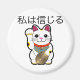 O Maneki Neko com as palavras, "Eu acredito" no topo.