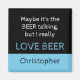 Uma ideia para um bebedor de cerveja. Adicionar um nome. Preto e azul. Eu adoro cerveja.