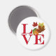 Quem não ama o outono e as lindas cores da queda que mudam as folhas fornecem? Texto empilhado LOVE com o "O" substituído por uma coleção colorida de folhas de mapeamentos de outono em vermelho, amarelo e laranja.
