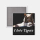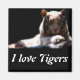 Uma foto de um tigre branco para mostrar seu amor por tigres na geladeira.