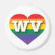 Este ímã apresenta um coração de orgulho arco-íris sobreposto pelas letras maiúsculas, brancas e em negrito WV, a abreviação oficial para West Virginia, o estado da montanha. Mostre suas cores verdadeiras, apoie a igualdade do casamento e comemore a orgulho gay.