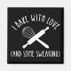 Eu Assar Com O Amor (E Alguns Jurando). Esta citação engraçada de cozinhar é um presente de excelente para um homem ou mulher que ama assar na cozinha. Também perfeito para um padeiro ou um trabalhador de padaria. Se você é um padeiro doméstico, ama as artes culinárias, e adora preparar um pão delicioso, biscoitos, muffins, bolos ou cupcakes no forno, então esse design humorístico é para você.