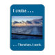 O Magnet expressa o sentimento de muitos que vivem (e, portanto, têm de trabalhar) para cruzar. Possui uma foto do acordar de um navio no início de um dia no mar, e as palavras, " Eu cruzei. . portanto, eu trabalho:"